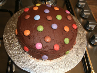 Here's Mum's cake which we also made the night before. Well I made the cake and "&son" iced it
